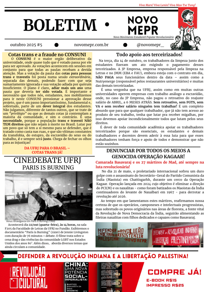 Disponibilizamos no post abaixo o boletim #5 de outubro do Novo MEPR da UFRJ e também os textos que estão nele.