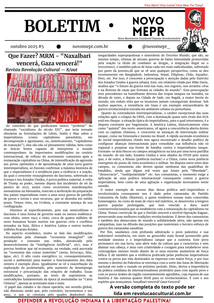 Que Fazer? MRM – “Naxalbari vencerá, Gaza vencerá!”